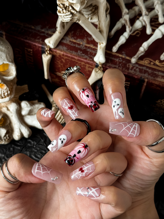 Step into spooky season with Haunted Glam β where eerie meets chic. Featuring shimmering mauve bases, playful ghost accents, dripping blood art, and spiderweb details, this set is the ultimate Halloween statement. πβ¨